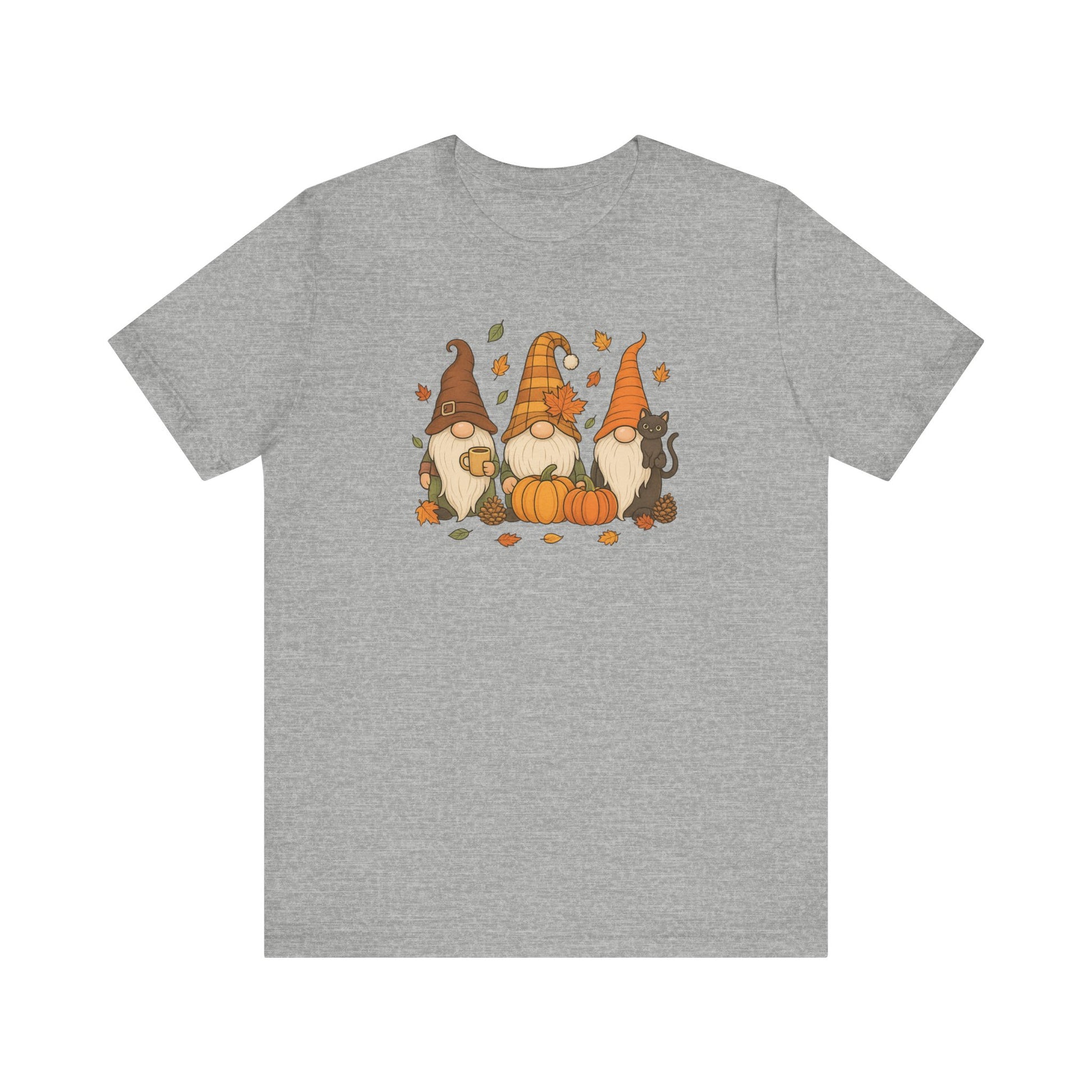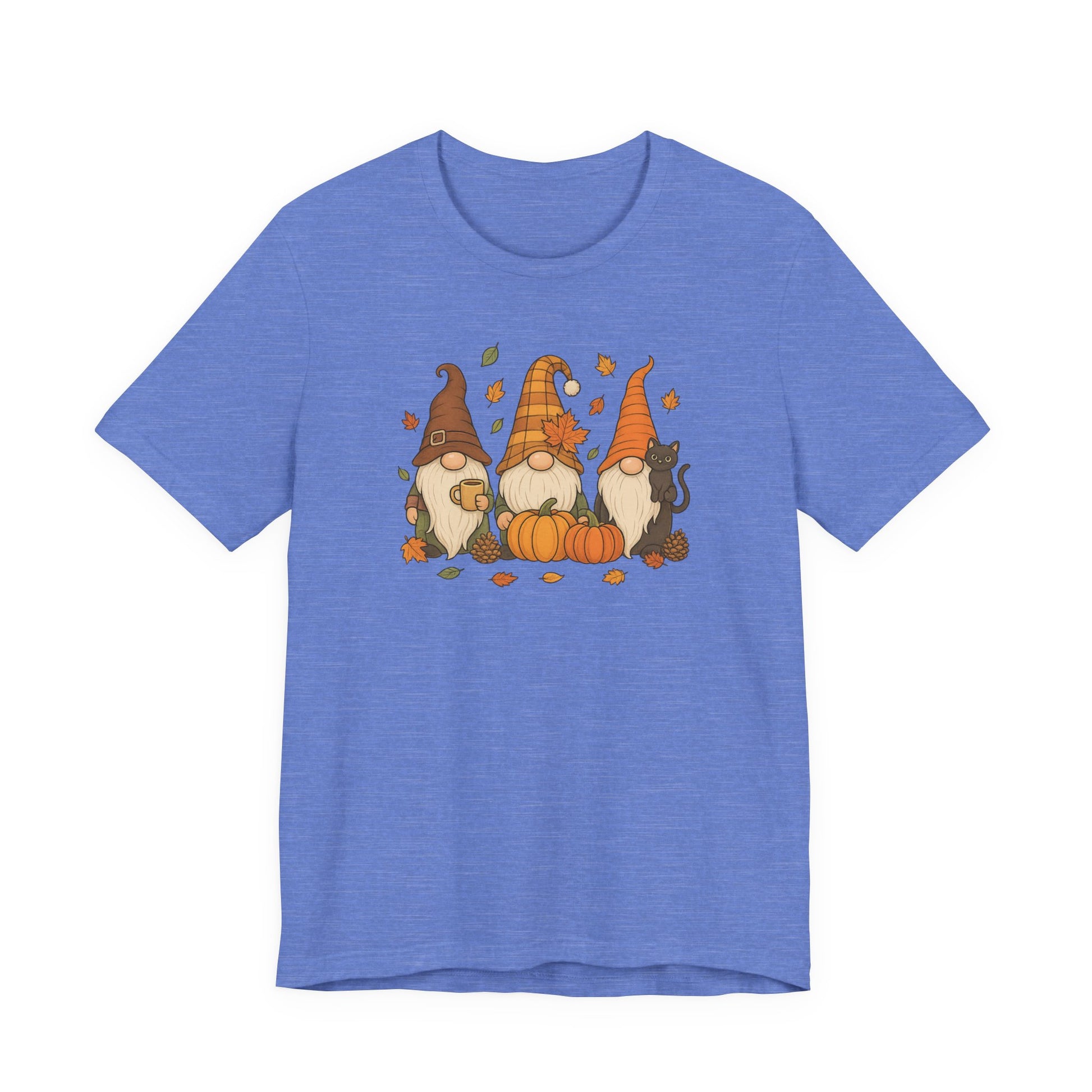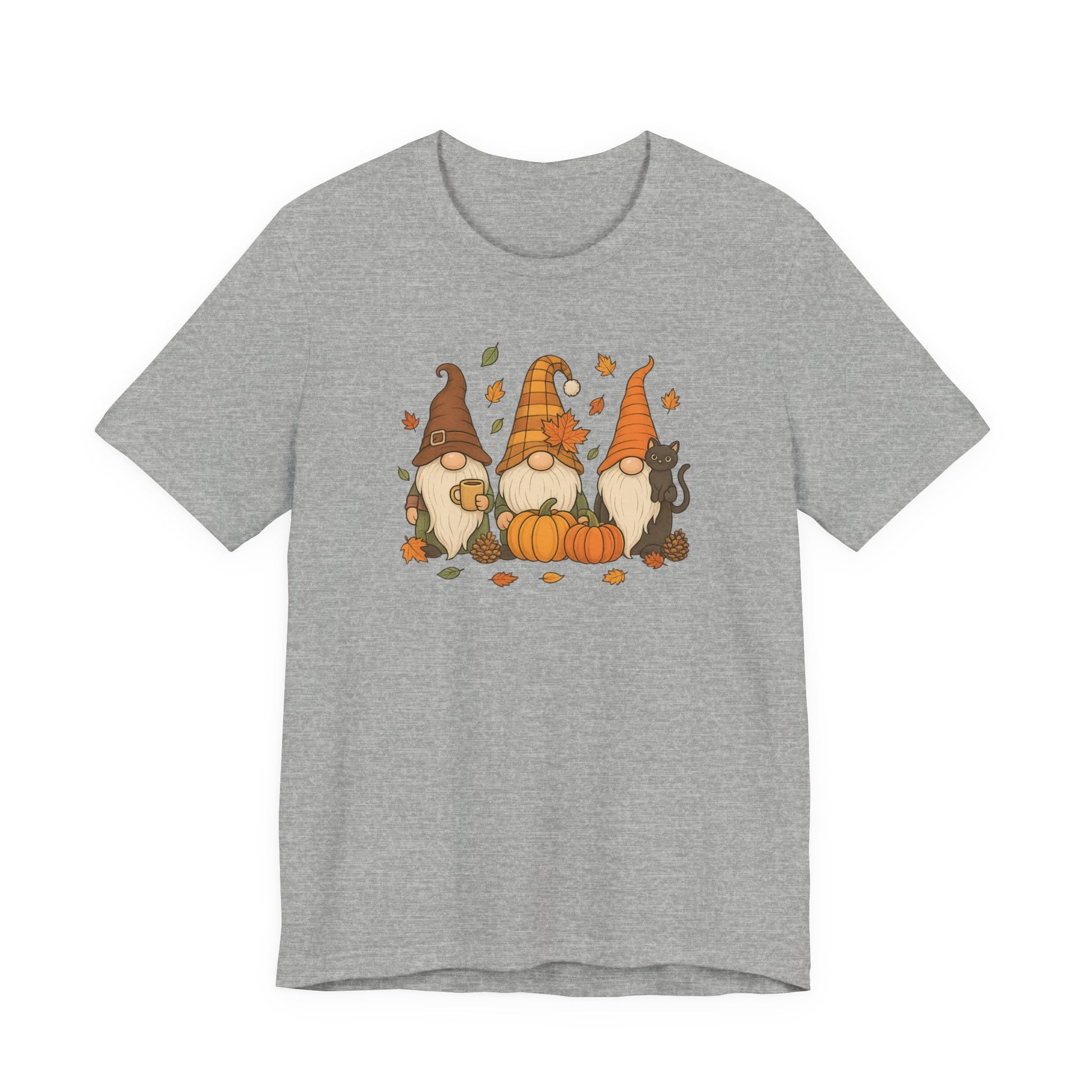 This shirt features a trio of charming autumn gnomes surrounded by all the classics: warm tones, leaves, and that crisp fall vibe everyone pretends they invented. Each gnome brings its own little personality, giving the design a playful, cozy look without losing that traditional harvest feel. It’s an easygoing, festive tee perfect for anyone who likes their fall style cute, simple, and straight out of a storybook.