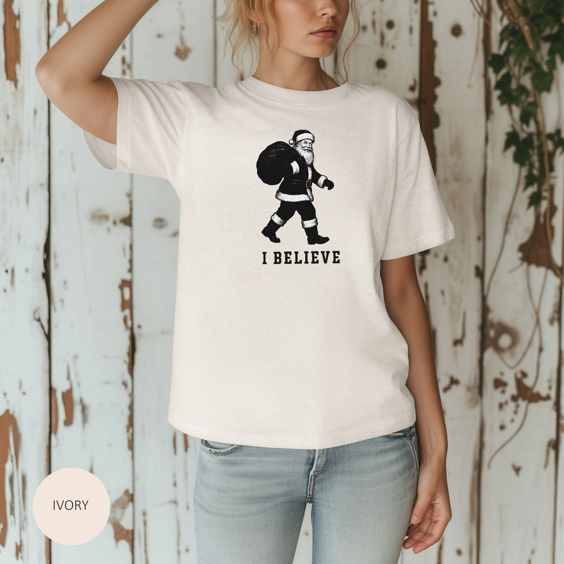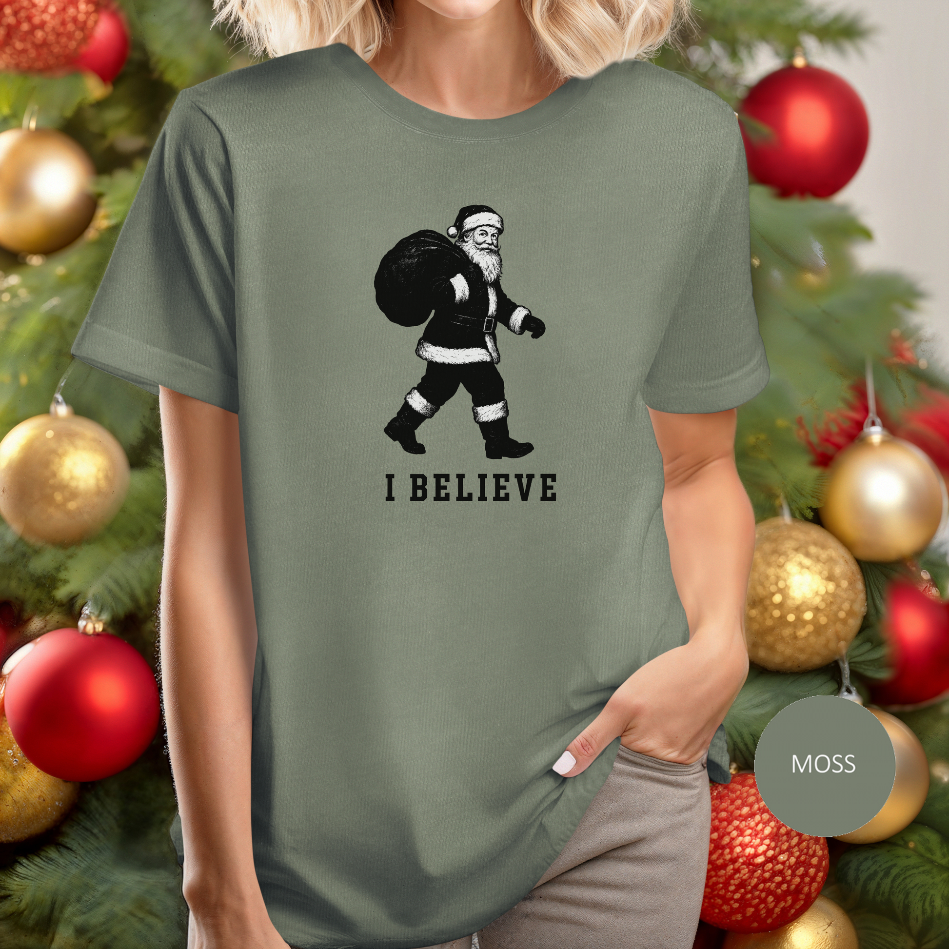 Christmas T-shirt, "I Believe" Santa T-Shirt, Christmas Santa Claus Wardrobe Essential