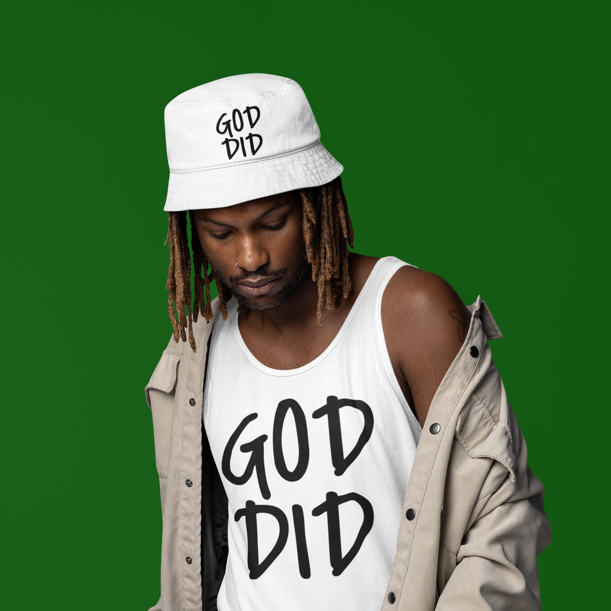 This bucket hat keeps things simple and bold with its clean “God Did” lettering front and center. It delivers that effortless, everyday look while still carrying a message of faith and confidence. Easy to style and perfect for sunny days, weekend errands, or adding a meaningful touch to any casual outfit.