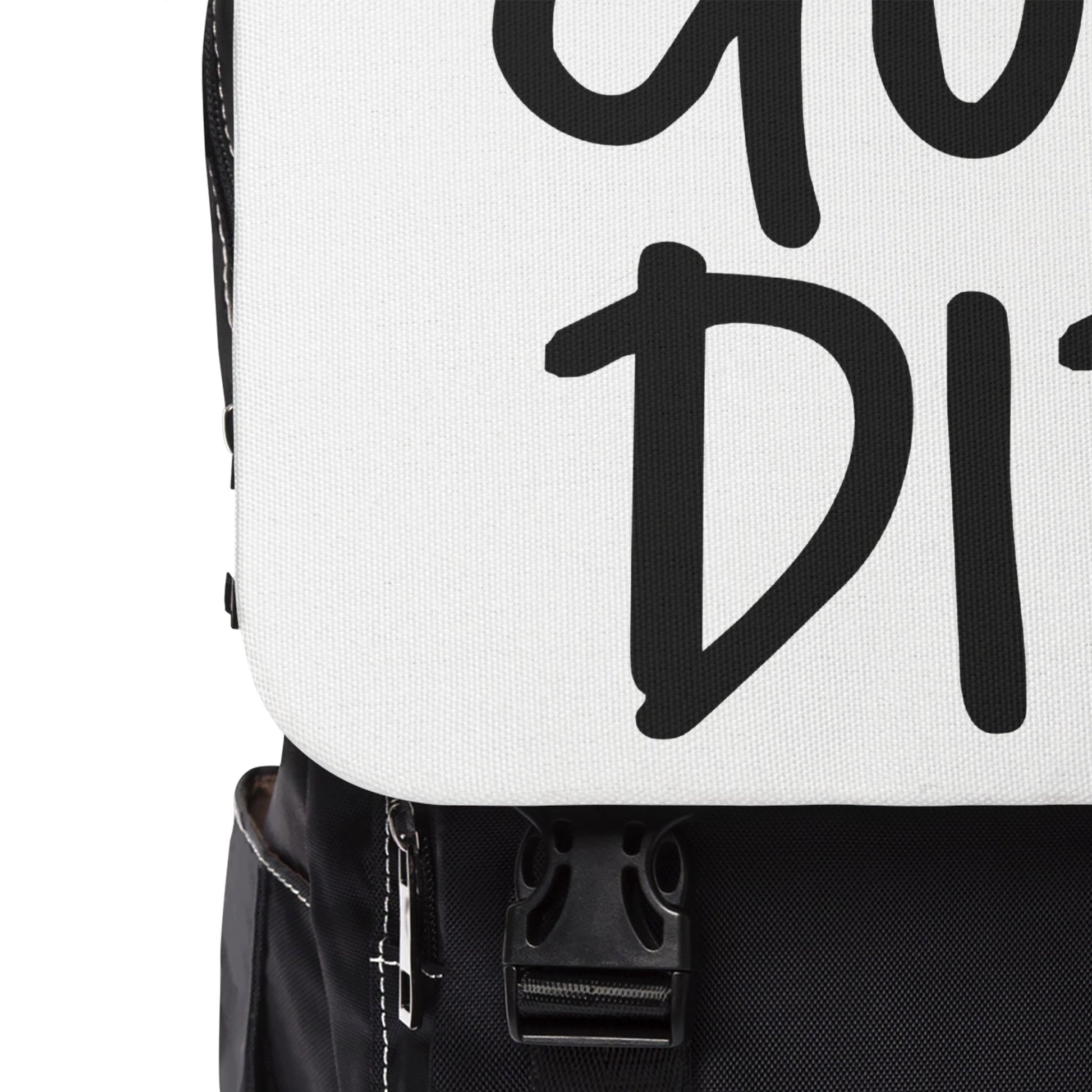 Casual backpack in a classic shape with a front flap design. It is made of durable Oxford canvas. It has two slip interior pockets and one laptop sleeve in the main compartment, a front zipper pocket, and two side pockets.