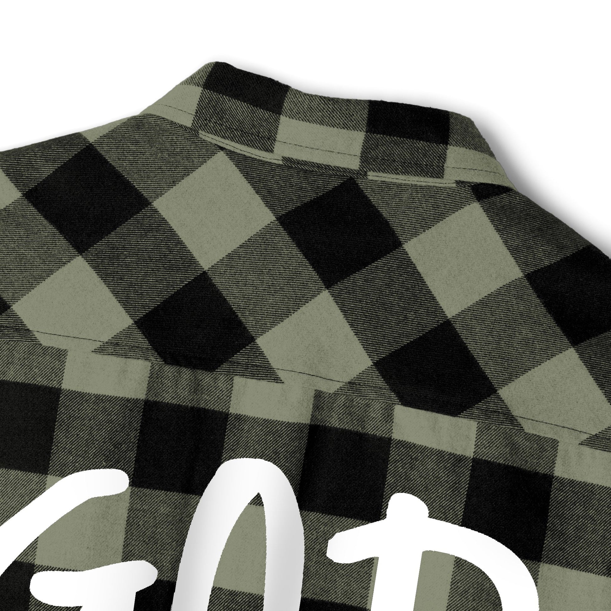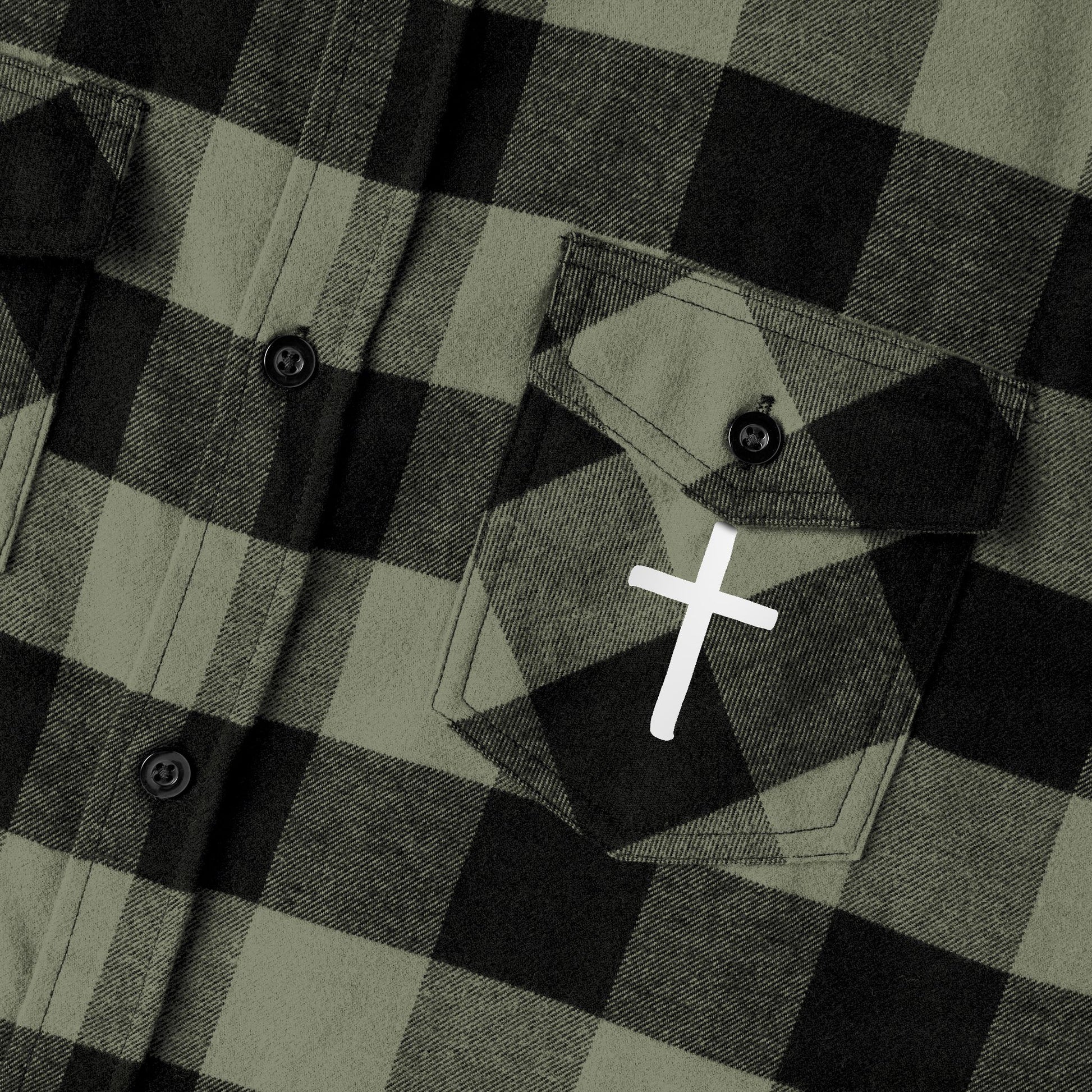 Whether you wear it buttoned up, layered over a tee, or open like a jacket, this flannel brings a touch of warmth and a whole lot of faith wherever you go.