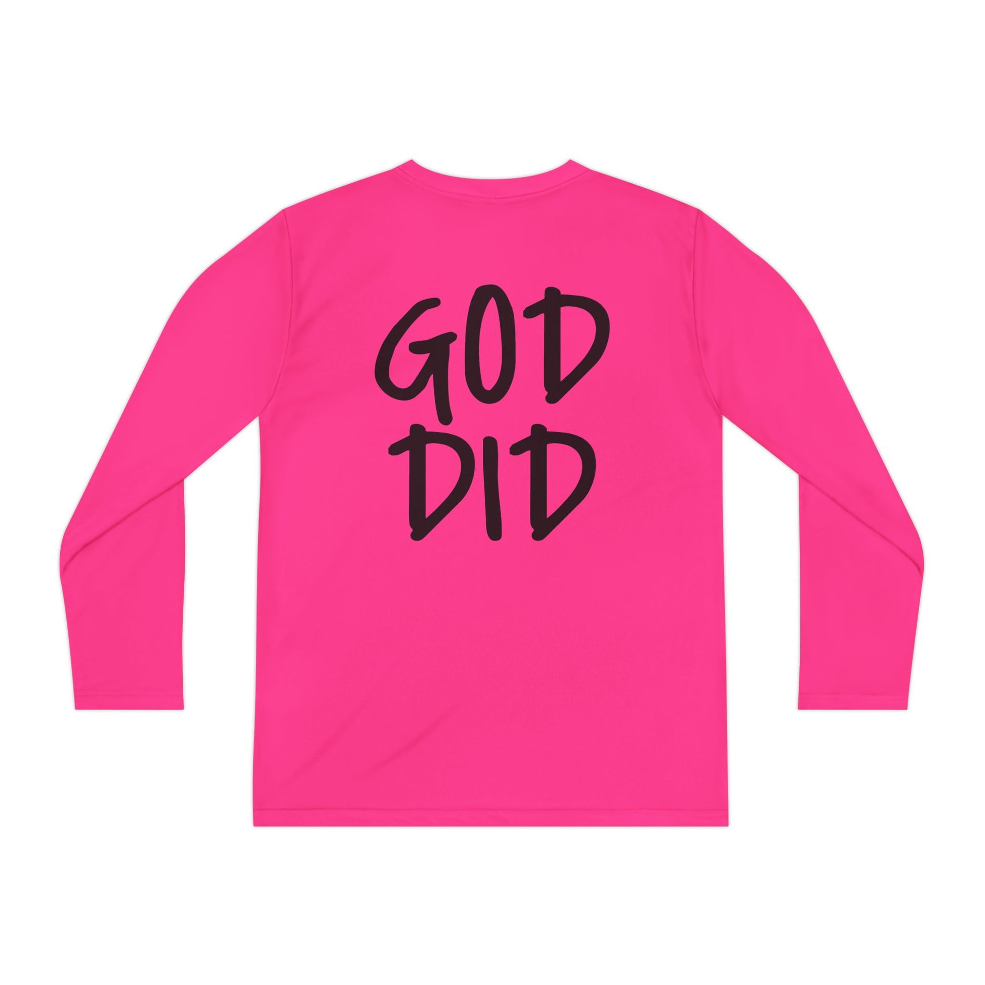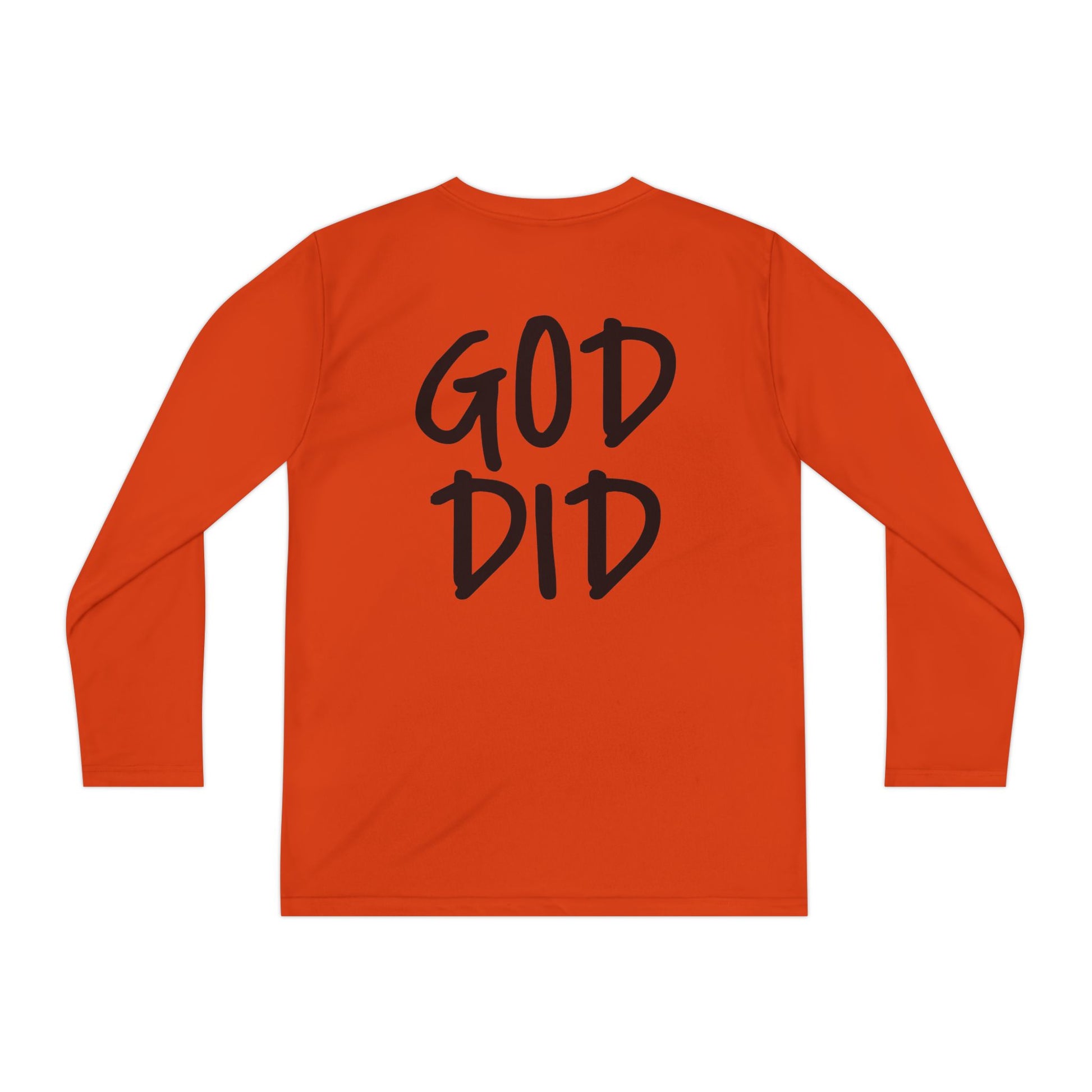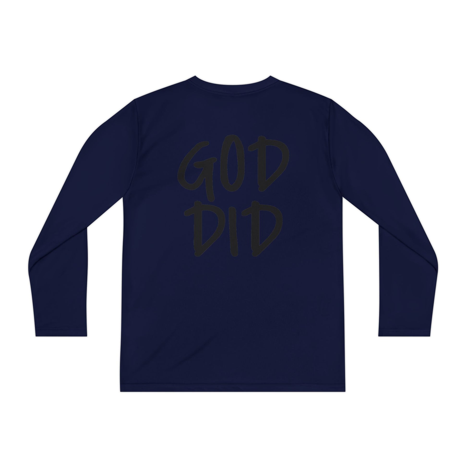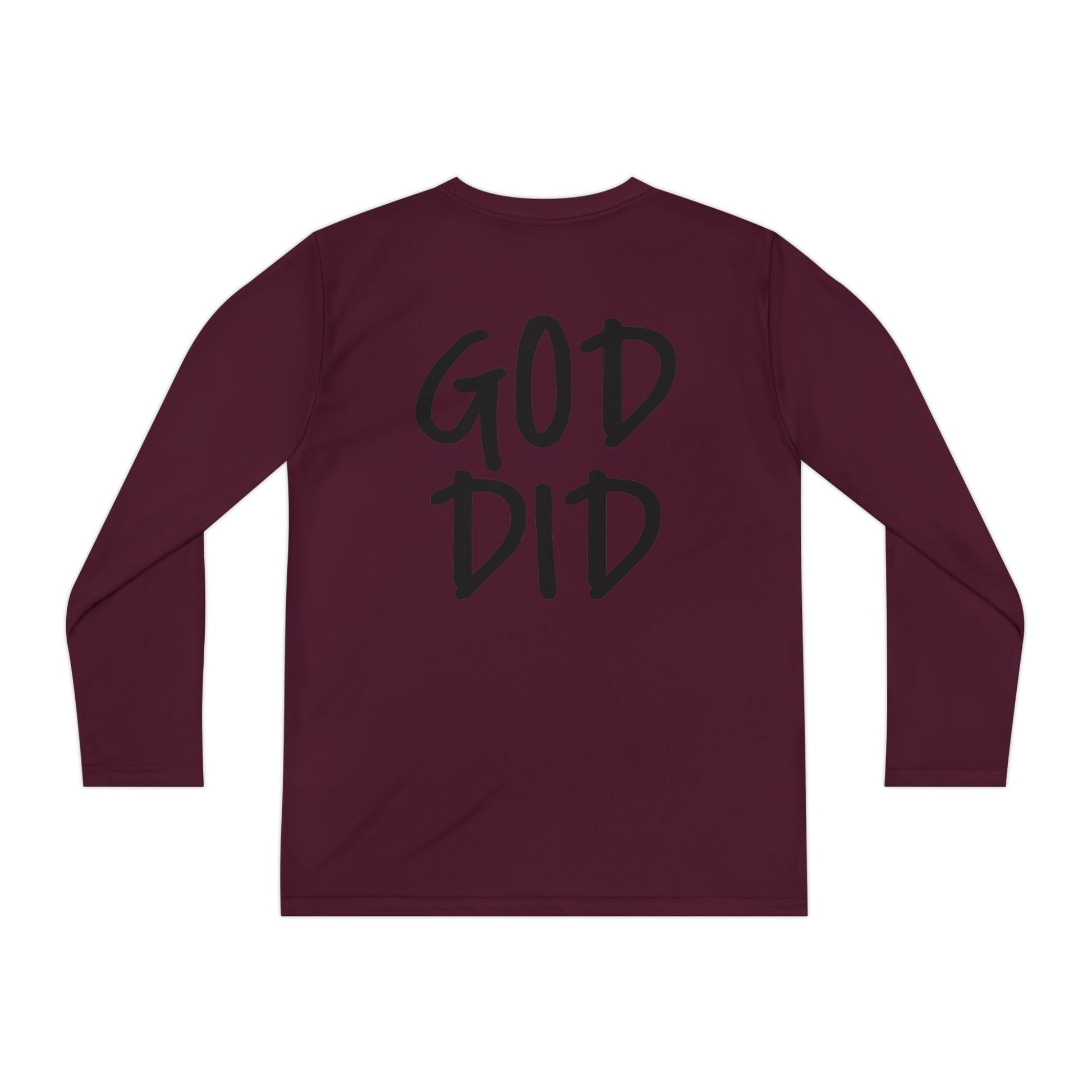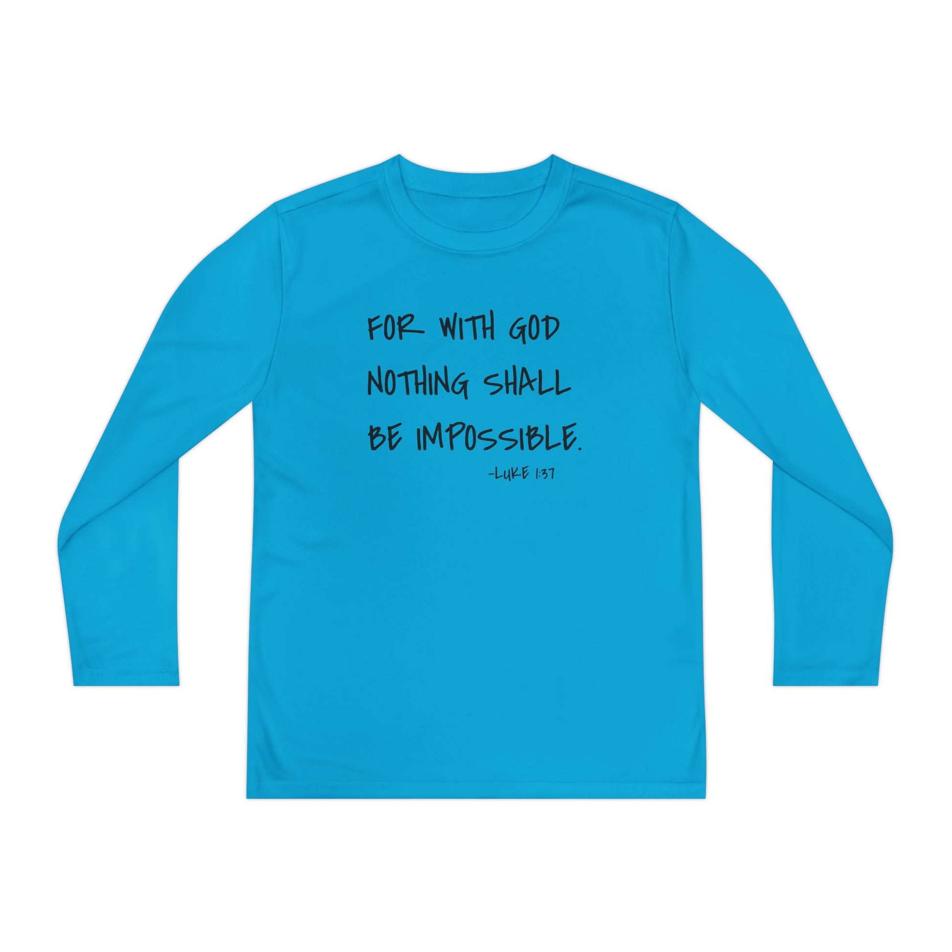 Built for bold faith and everyday comfort, this youth long sleeve tee reminds the next generation where true strength comes from. With Luke 1:37 — “For with God nothing shall be impossible” — on the front and “God Did” in big, confident letters across the back, it’s a statement of belief that fits right into their world.