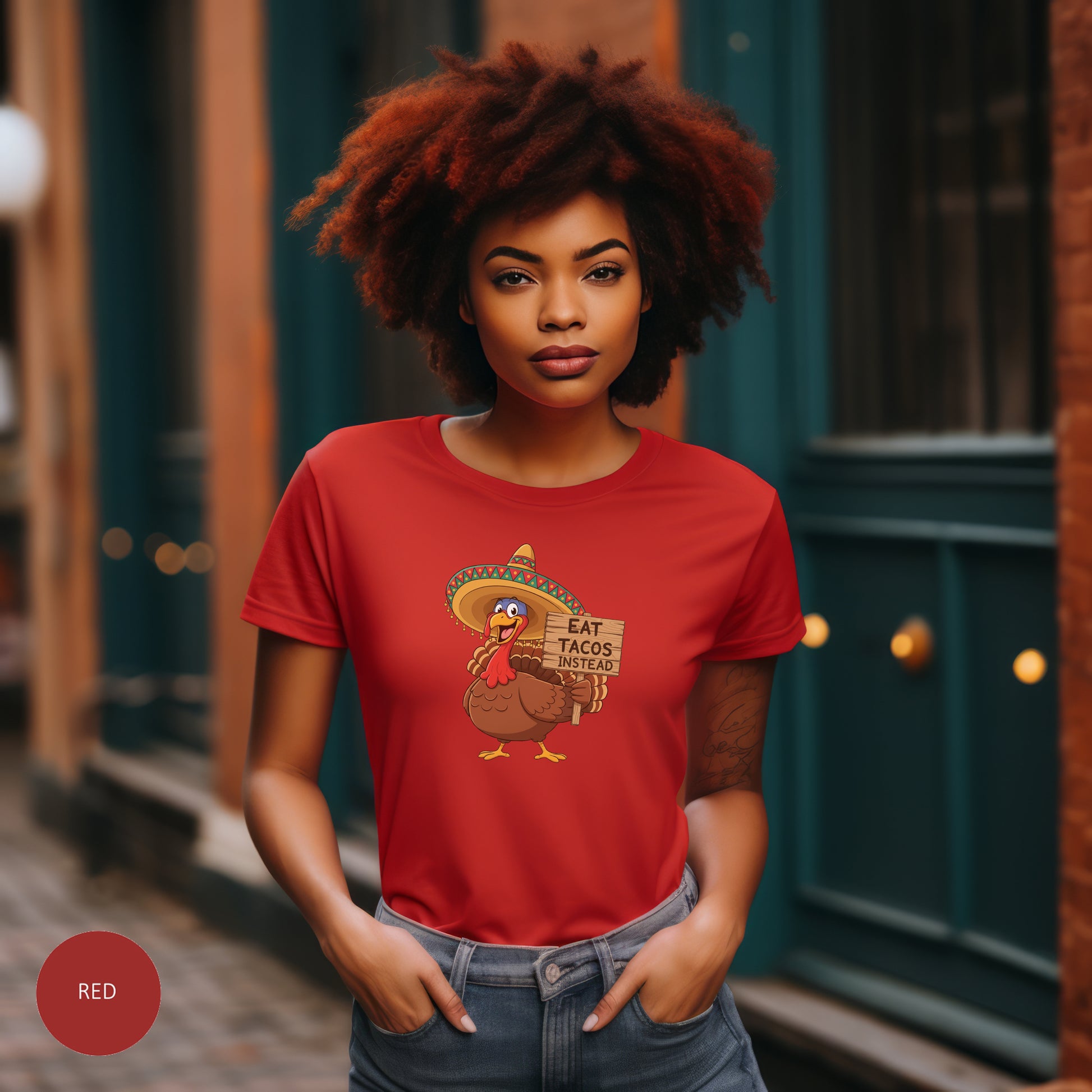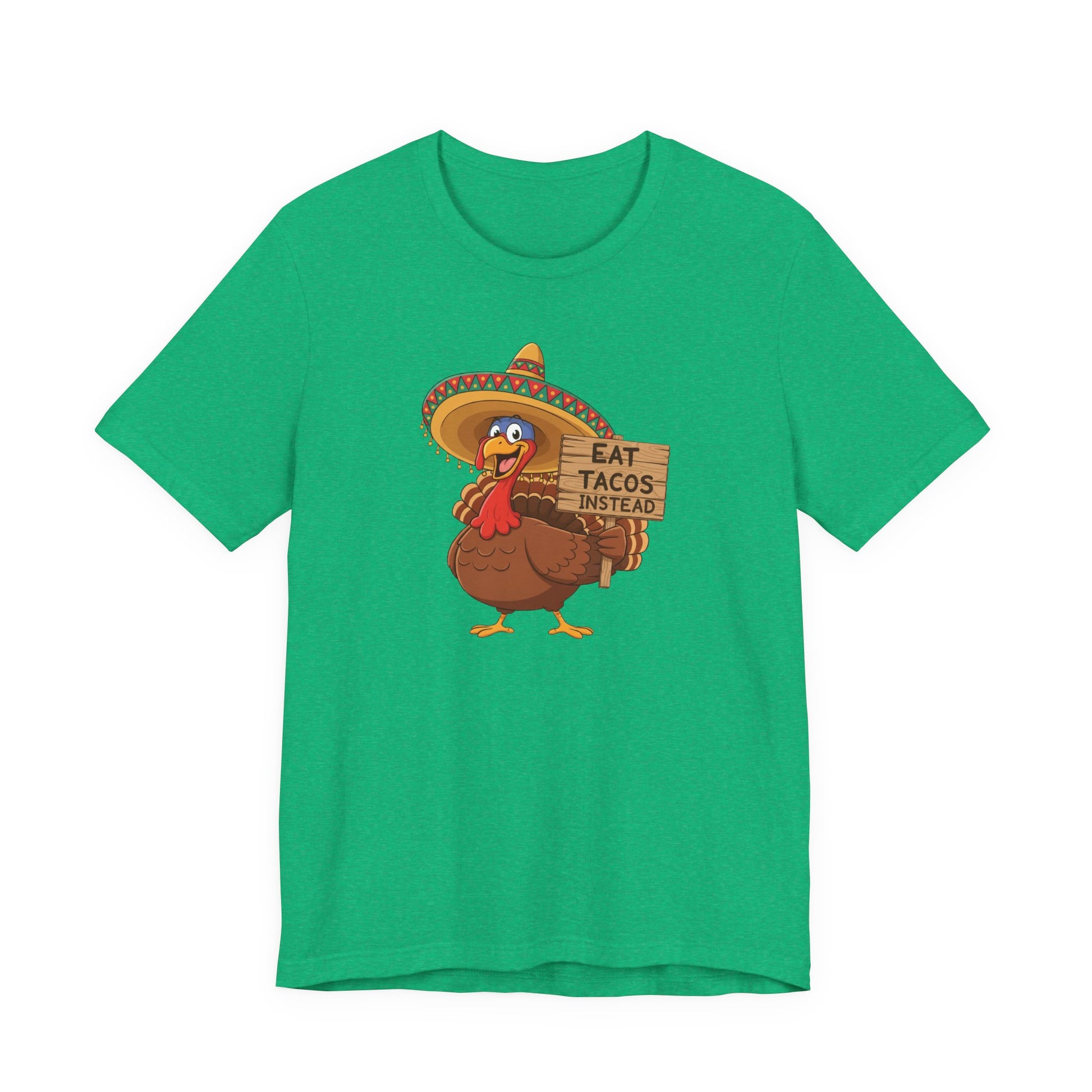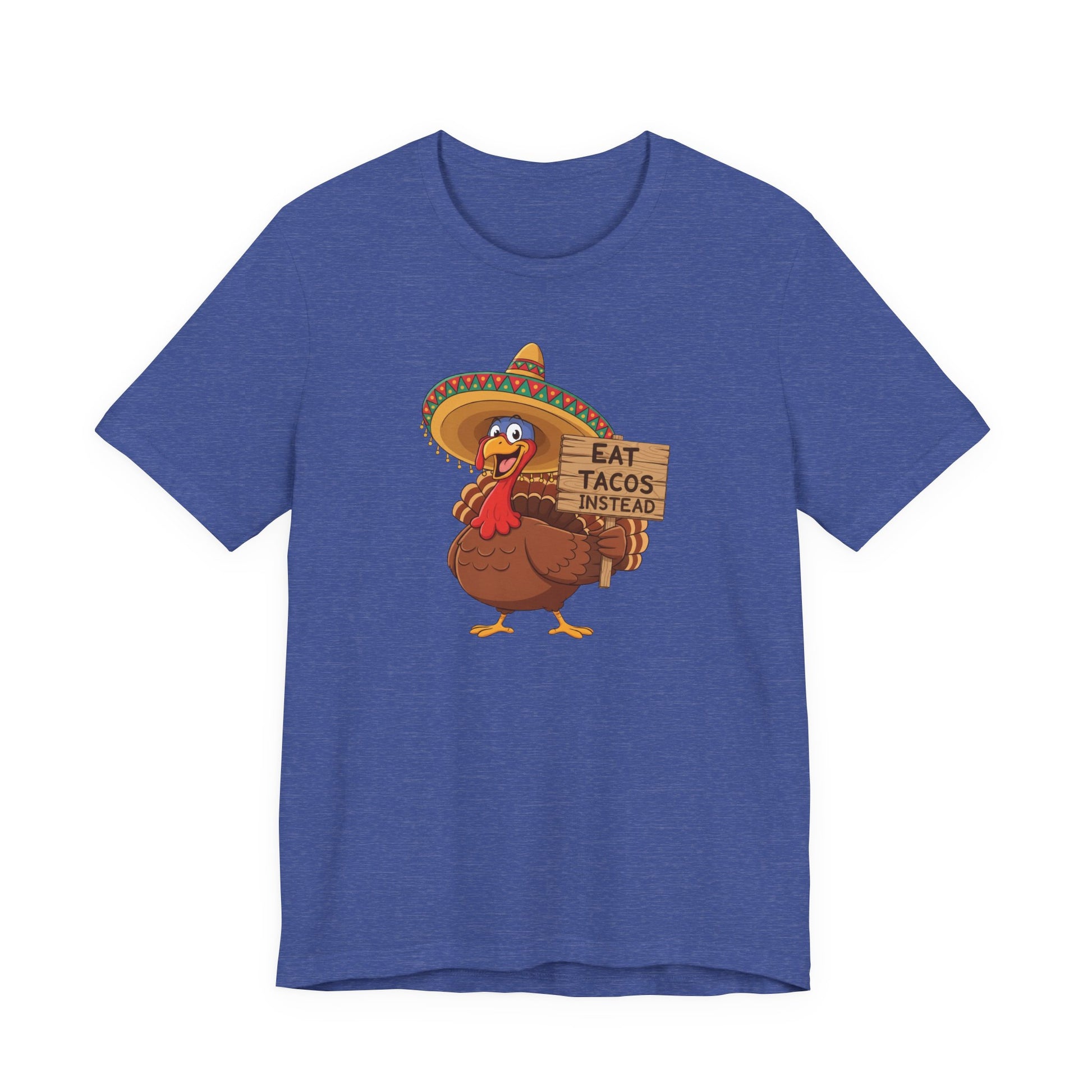 Add a little humor to your holiday season with this playful “Eat Tacos Instead” Turkey Tee! Featuring a cheerful cartoon turkey rocking a festive sombrero and holding a wooden sign, this design is all about bringing laughs to Thanksgiving gatherings. Whether you're the family comedian, the designated taco lover, or simply protesting the traditional dinner bird, this shirt is sure to be a conversation starter.🌮